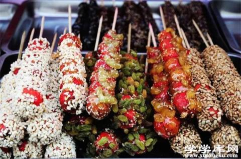 冰糖葫蘆是天津的一種特色小吃,當地制作的冰糖葫蘆與其他地方的有所不同,天津當地人將冰糖葫蘆叫做糖墩,在山楂表面裹上厚厚的白糖漿,還有一些其他的添加食品,制作好的冰糖葫蘆,外皮酥脆鮮甜,內里非常的酸澀,這種小吃在當地青年人群中比較受歡迎,很多外地游客在當地旅游都會品嘗這種特色美食。